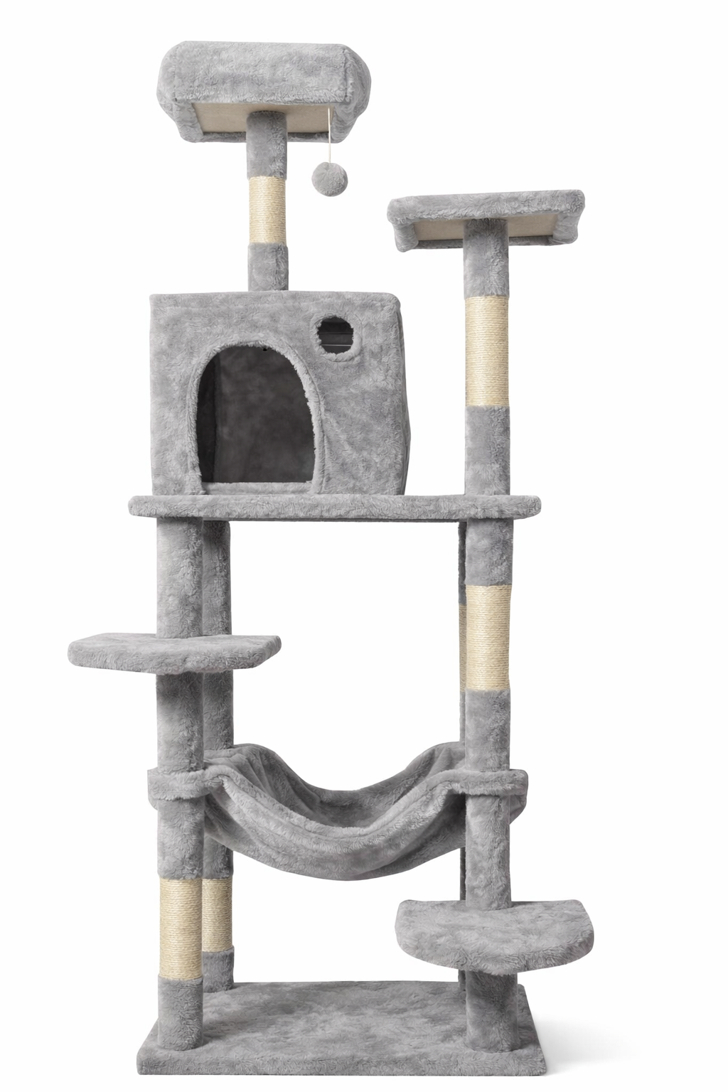 Stort klorestativ til katt med hule, hengekøye og fin utsiktsplass på toppen.