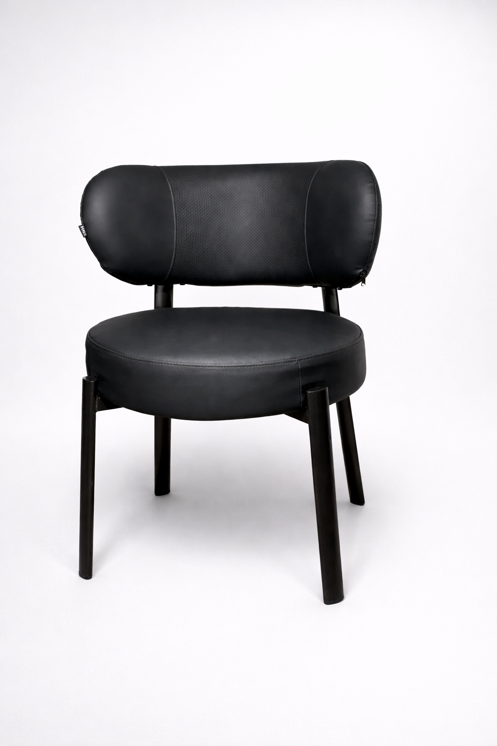 Stol i imitert skinn med buet rygg.